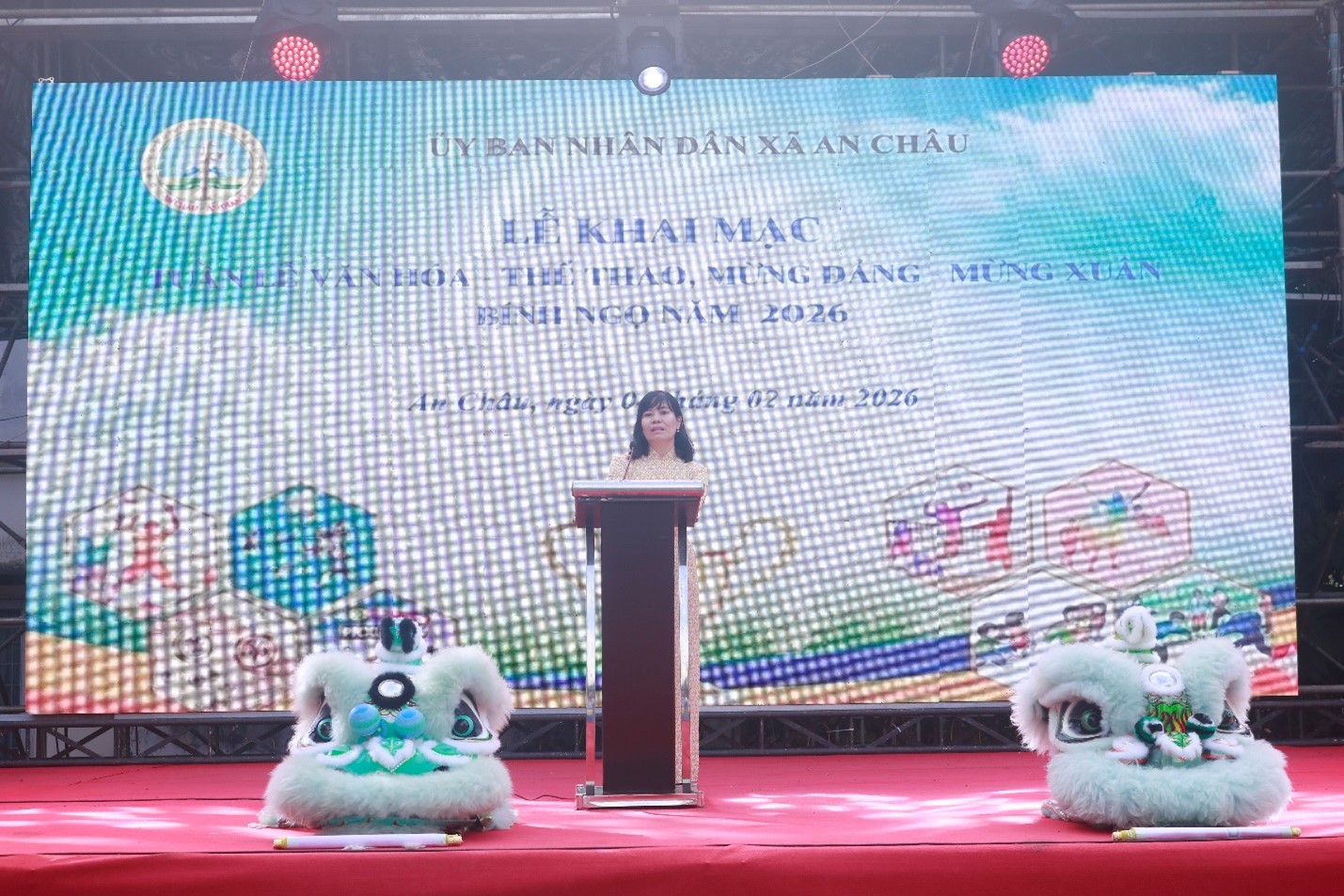 Phát biểu tại Lễ Khai mạc Bà Huỳnh Thị Thanh Tuyền - Ủy viên Ban Thường vụ Đảng ủy, Phó Chủ tịch UBND xã nhận định Tuần lễ Văn hóa – Thể thao được tổ chức nhằm tiếp tục duy trì và đẩy mạnh phong trào thể dục thể thao trong quần chúng Nhân dân, hưởng ứng Cuộc vận động “Toàn dân rèn luyện thân thể theo gương Bác Hồ vĩ đại”; đồng thời tạo không khí vui tươi, phấn khởi, lành mạnh cho Nhân dân trong dịp Tết cổ truyền. Thông qua các hoạt động của tuần lễ, xã An Châu có điều kiện đánh giá phong trào thể dục thể thao ở cơ sở, phát hiện và tuyển chọn các vận động viên có thành tích tốt để tiếp tục bồi dưỡng, tham gia các giải đấu cấp trên trong thời gian tới. Để Tuần lễ Văn hóa – Thể thao diễn ra đúng kế hoạch, đạt hiệu quả thiết thực, tôi đề nghị các vận động viên tham gia thi đấu với tinh thần đoàn kết, trung thực, cao thượng, chấp hành nghiêm điều lệ và các quy định của Ban Tổ chức. Đề nghị Tổ trọng tài nêu cao tinh thần trách nhiệm, làm việc công tâm, khách quan. Các bộ phận chuyên môn, hậu cần, y tế, an ninh tiếp tục phối hợp chặt chẽ, đảm bảo tốt các điều kiện phục vụ trong suốt thời gian diễn ra các hoạt động.