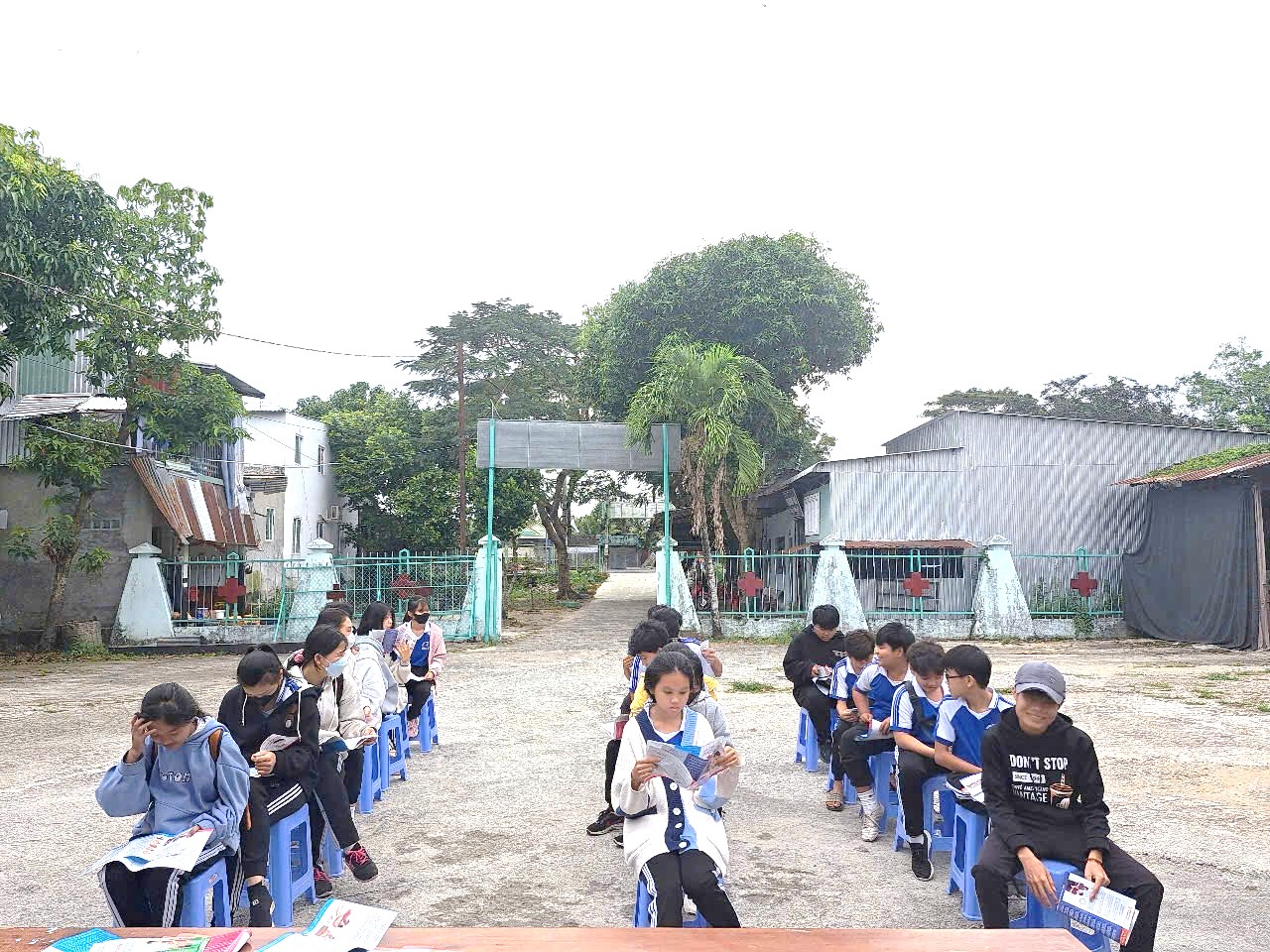 Học sinh đọc các ấn phẩm truyền thông về các biện pháp phòng lây truyền nhiễm HIV
