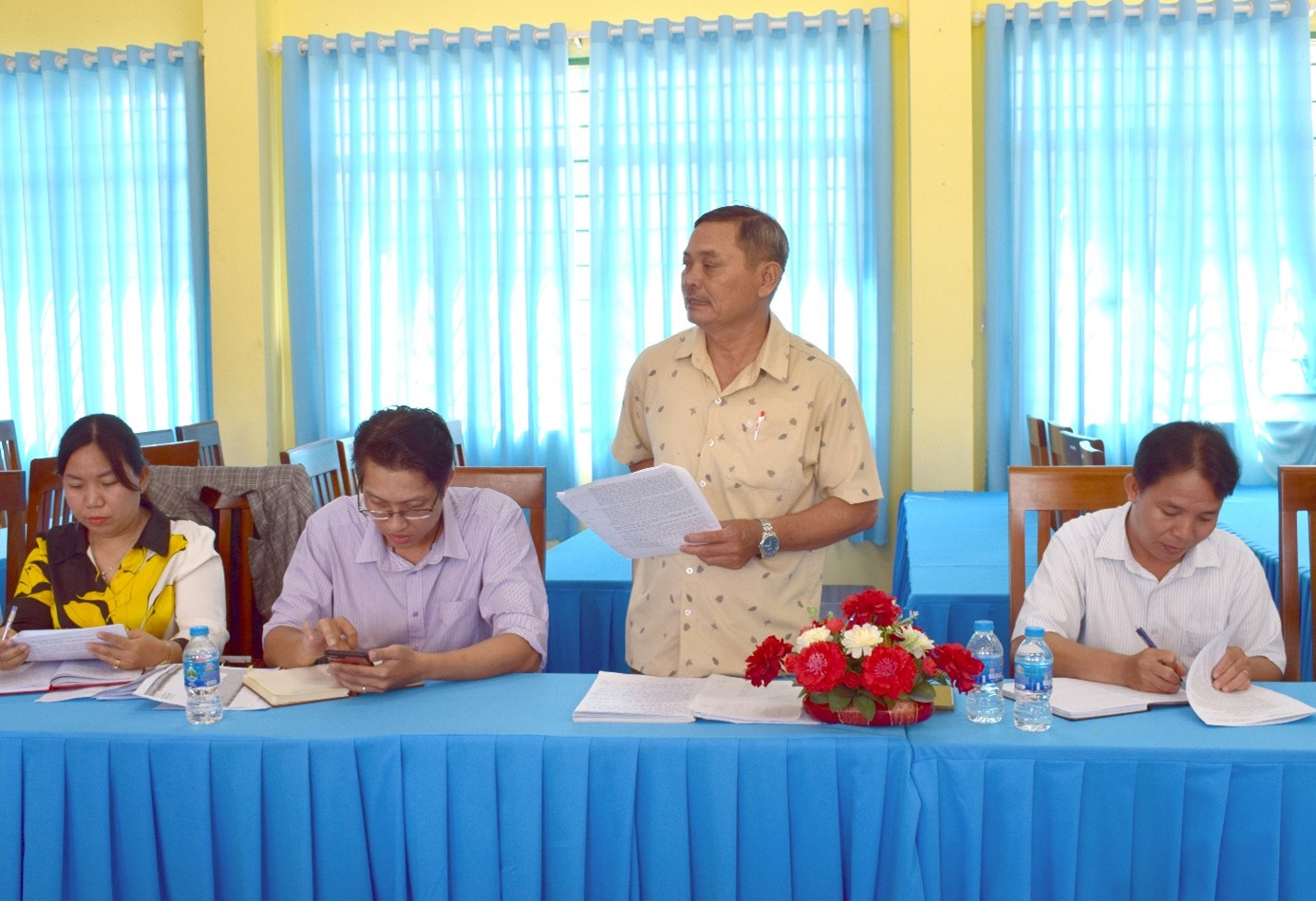 Đoàn làm việc và địa phương cùng nhau trao đổi, thảo luận những thuận lợi, khó khăn và đề ra phương hướng, nhiệm vụ thực hiện trong thời gian tới. Trong đó, Mặt trận thị trấn cần tích cực công tác vận động, tuyên truyền các chủ trương của Đảng, chính sách pháp luật của Nhà nước và địa phương; Tăng cường công tác nắm bắt tình hình tư tưởng của cán bộ, đảng viên và Nhân dân; Phát huy dân chủ, đoàn kết, thực hiện thắng lợi nhiệm vụ phát triển kinh tế - xã hội của địa phương…