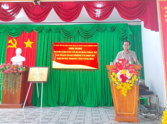 Chiều ngày 23/7/2024, Ủy ban Mặt trận tổ quốc Việt Nam tỉnh An Giang phối hợp với Ban an toàn giao thông tỉnh tổ chức hội nghị tuyên truyền “An toàn giao thông năm 2024” cho 60 đại biểu đại diện là các Ngành, Đoàn thể, Ban nhân dân 06 ấp và bà con tiêu biểu, người có uy tín trong các tầng lớp Nhân dân trên địa bàn xã. Đến dự có bà Trương Thị Ánh Loan - Ủy viên thường trực – Phó ban tuyên giáo-Phong trào Ủy ban Mặt trận tổ quốc Việt Nam tỉnh.