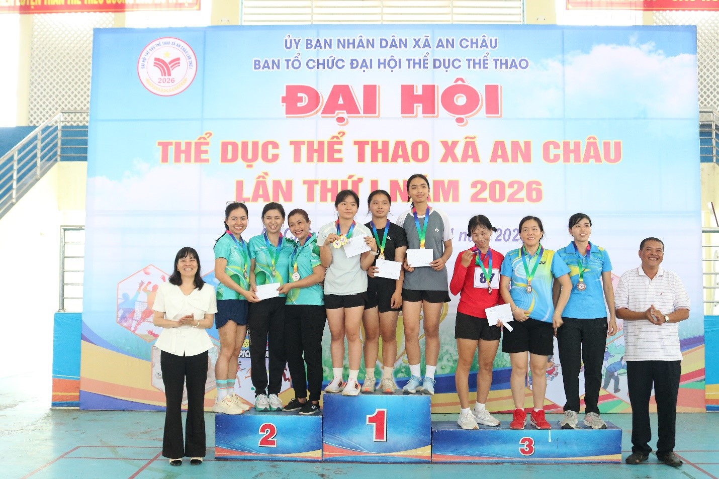 Ở nội dung đồng đội Nữ, giải nhất đơn vị Trường Trung học phổ thông Nguyễn Bỉnh Khiêm; giải nhì thuộc về đơn vị Trường Mầm non An Châu; giải 3 thuộc về đơn vị Trường Trung học cơ sở An Châu.