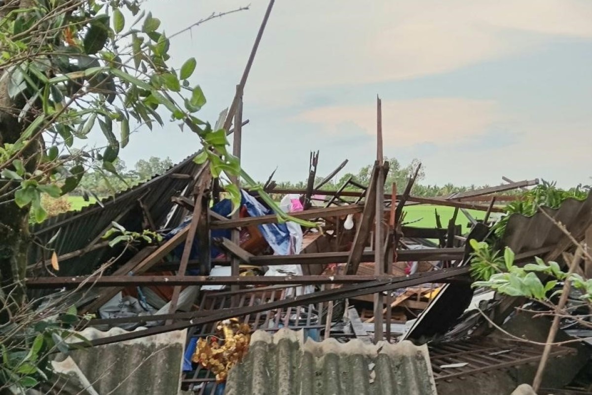 Vào lúc 15 giờ, ngày 07 - 5 - 2024. Sau cơn mưa giông kèm theo lốc xoáy đã làm tốc mái nhà 02 căn và sập 01 căn nhà xảy ra trên địa bàn xã Hòa Bình Thạnh, huyện Châu Thành.