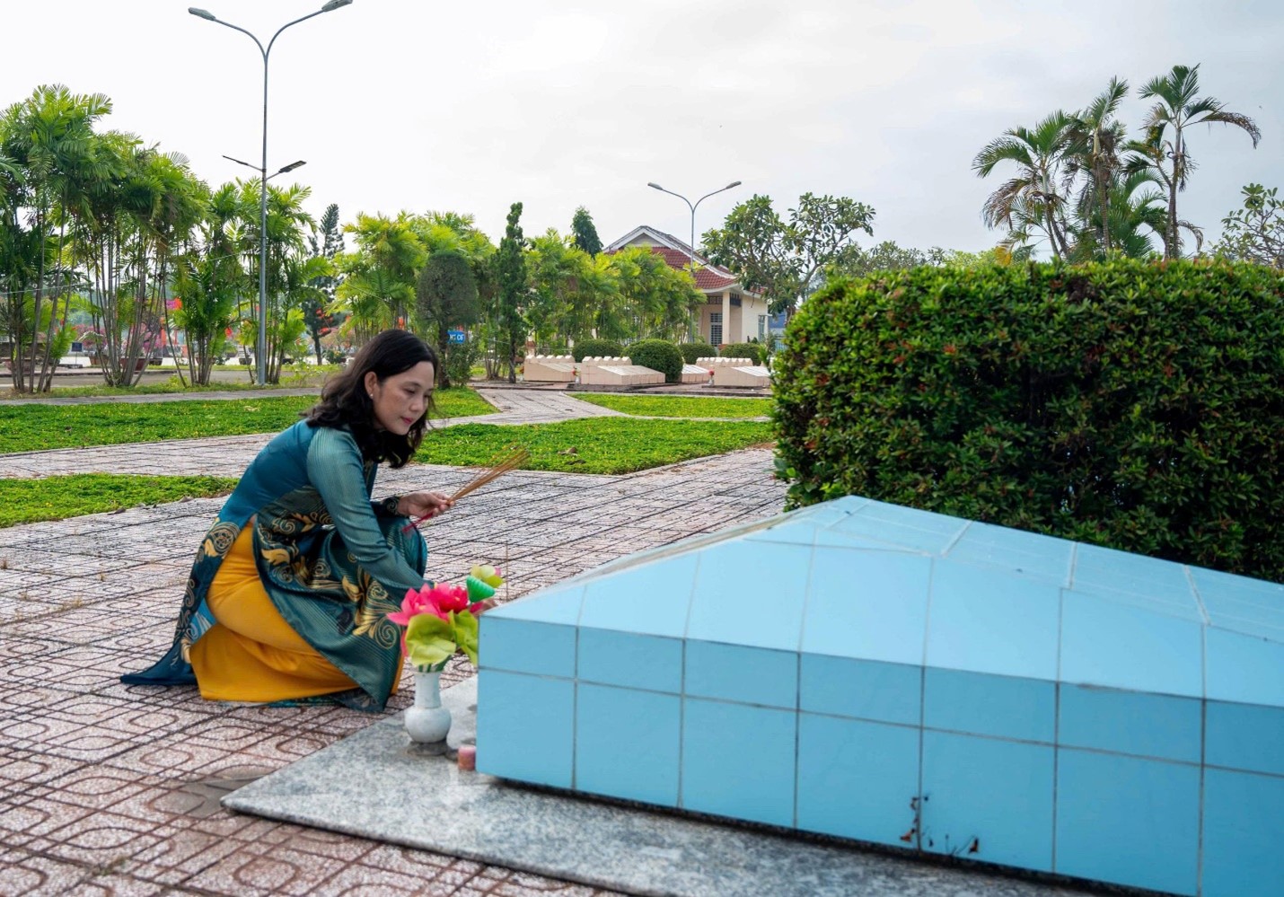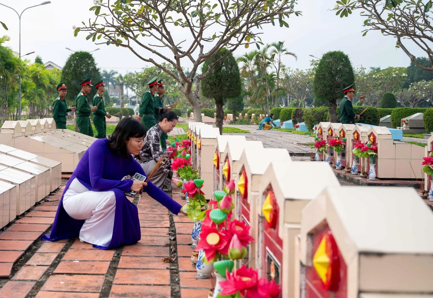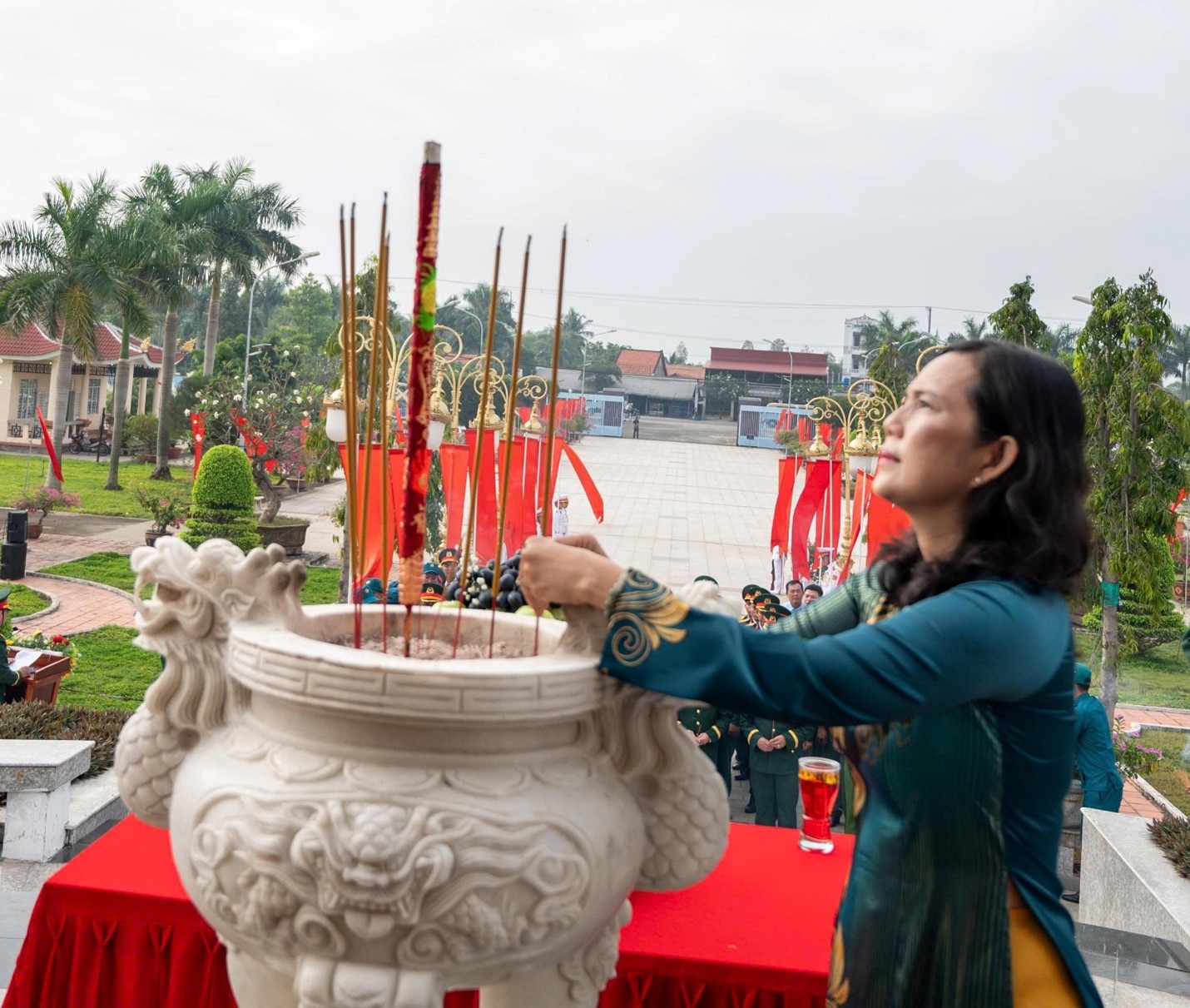 Trong không khí trang nghiêm, các đại biểu đã dâng hoa lên đài tưởng niệm, dành một phút mặc niệm và thắp hương lên phần mộ để bày tỏ lòng thành kính và biết ơn vô hạn đối với sự hy sinh to lớn của các Anh hùng liệt sĩ đã chiến đấu anh dũng hy sinh để bảo vệ Tổ quốc, giành độc lập cho dân tộc, đem lại tự do, hòa bình cho nhân dân.