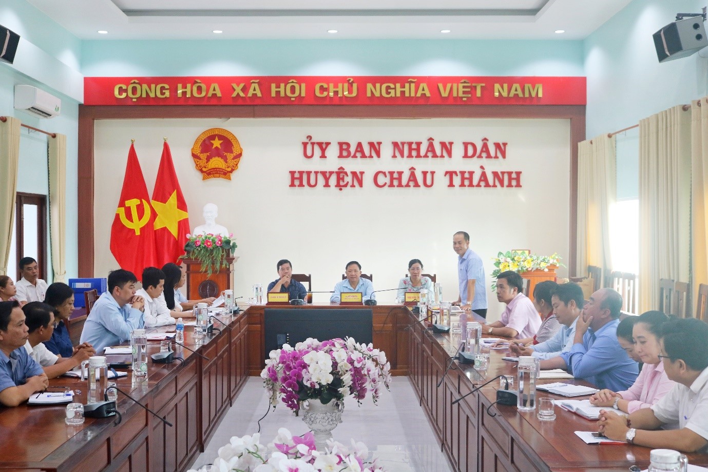 Chiều ngày 08/10/2024, nhằm kiểm tra, giám sát, đánh giá kết quả thực hiện các tiêu chí, chỉ tiêu về lĩnh vực Văn hoá, Thể thao và Du lịch đối với các xã, thị trấn đăng ký xây dựng Nông thôn mới, Nông thôn mới nâng cao, Nông thôn mới kiểu mẫu, đô thị văn minh năm 2024. Đoàn kiểm tra của Sở Văn hóa, Thể thao và Du lịch tỉnh do ông Đào Huỳnh Nhật Duy - Phó Trưởng Phòng Xây dựng Nếp sống Văn hóa và Gia đình, Sở Văn hóa, Thể thao và Du lịch tỉnh làm Trưởng đoàn, đã có buổi làm việc tại huyện Châu Thành. Tiếp đoàn có ông Hồ Hữu Tài - Ủy viên Ban Thường vụ Huyện ủy - Phó Chủ tịch UBND huyện; lãnh đạo Phòng Văn hóa và Thông tin; lãnh đạo Trung tâm Văn hóa - Thể thao và Truyền thanh huyện; lãnh đạo các xã, thị trấn trên địa bàn huyện.