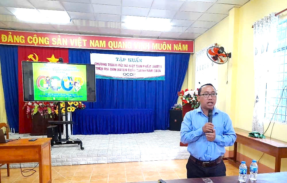 Ngày 11-12-2024, tại UBND xã Vĩnh Lợi, Phòng Nông nghiệp và Phát triển Nông thôn huyện Châu Thành phối hợp với Văn phòng Điều phối Nông thôn mới tỉnh, Chi cục Quản lý Chất lượng Nông lâm Sản và Thủy sản tổ chức tập huấn Chương trình mỗi xã một sản phẩm (OCOP) năm 2024.