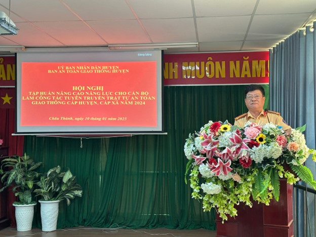 Ngày 10-01-2025, Ban An toàn giao thông huyện Châu Thành tổ chức tập huấn nâng cao năng lực cho cán bộ làm công tác tuyên truyền an toàn giao thông các cấp về công tác tuyên truyền, phổ biến pháp luật trật tự, an toàn giao thông cho lứa tuổi học sinh trên địa bàn huyện Châu Thành năm 2024. Trung tá Trần Quốc Toản - Phó trưởng Công an huyện Châu Thành tham dự.