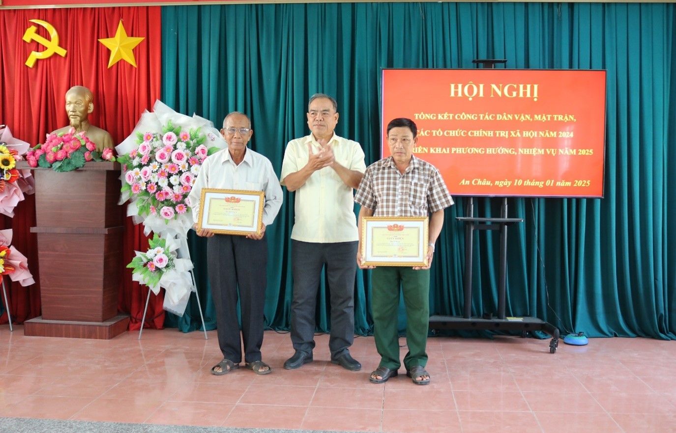Với những kết quả đạt được trong năm 2024, dịp này, thị trấn An Châu có nhiều tập thể, cá nhân nhận giấy khen vì có thành tích xuất sắc trong hoạt động công tác Dân vận, Mặt trận và hội đoàn thể năm 2024…