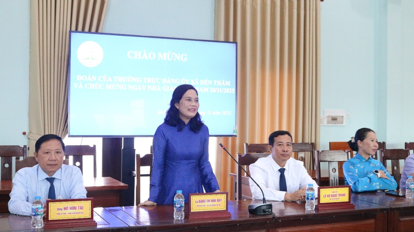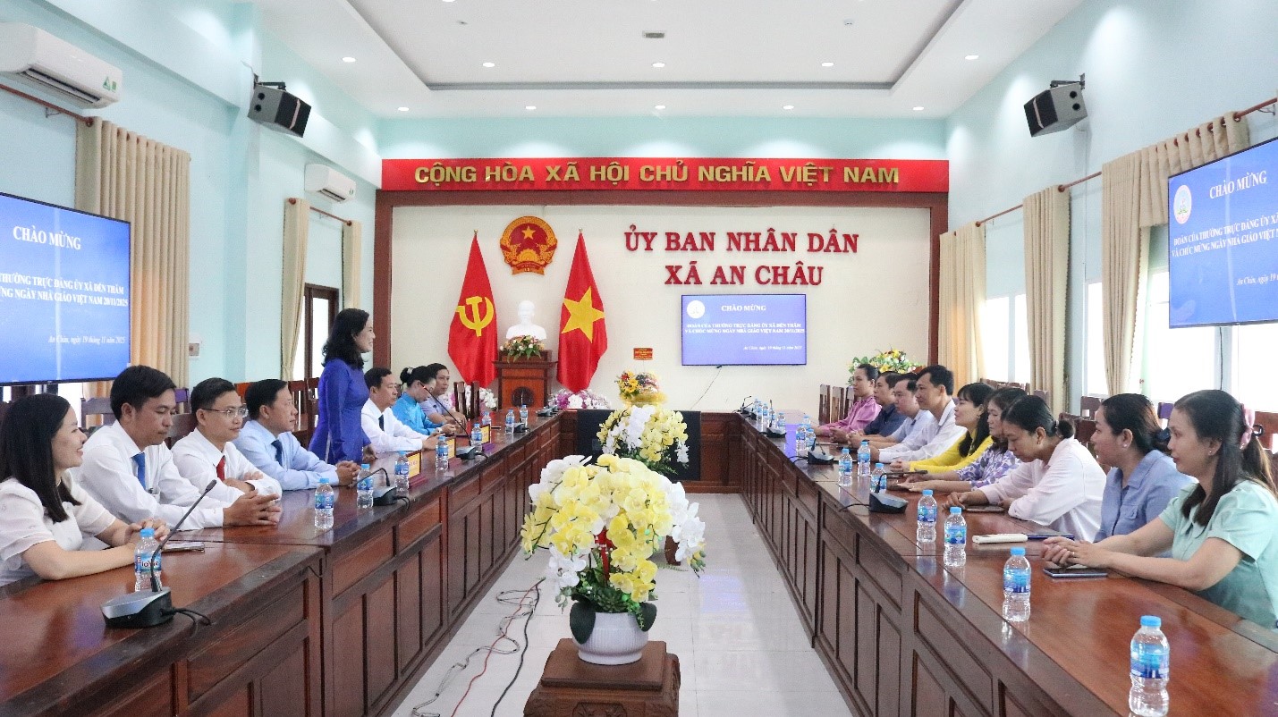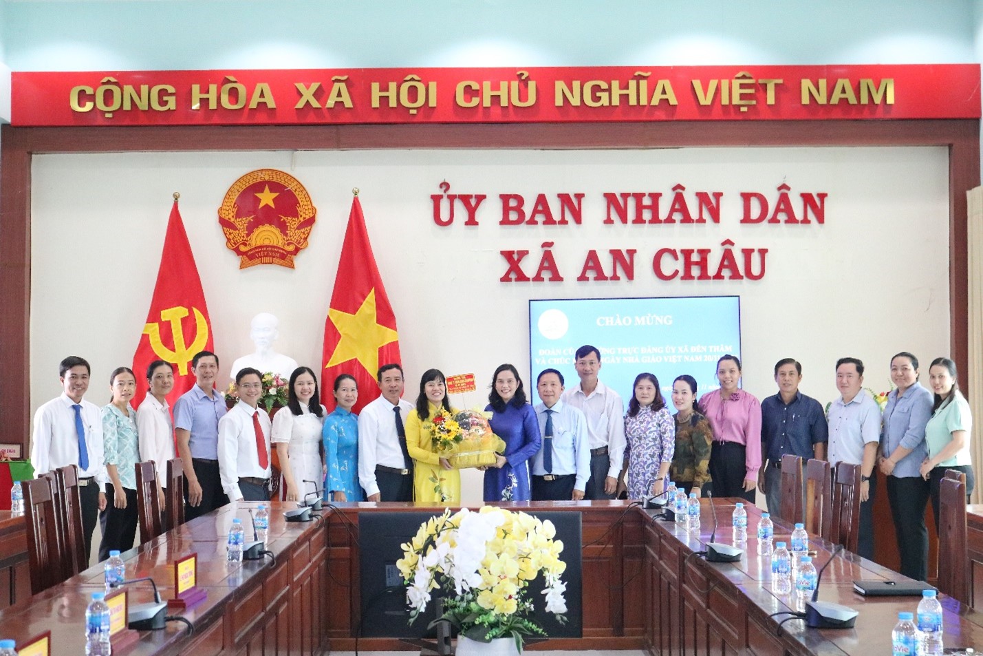 Nhân kỷ niệm 43 năm Ngày Nhà giáo Việt Nam (20/11/1982-20/11/2025). Ngày 19-11-2025, Thường trực Đảng ủy xã An Châu do đồng chí Đặng Thị Hoa Rây – Tỉnh ủy viên, Bí thư Đảng ủy, Chủ tịch HĐND xã; đồng chí Lê Hồ Ngọc Trung – Phó Bí thư Thường trực Đảng ủy xã; đồng chí Hồ Hữu Tài – Phó Bí thư Đảng ủy, Chủ tịch UBND xã; các đồng chí UVBTV; lãnh đạo phòng, ban tổ chức đoàn đến thăm và tặng quà cơ sở giáo dục, giáo viên, cựu giáo chức khó khăn trên địa bàn.