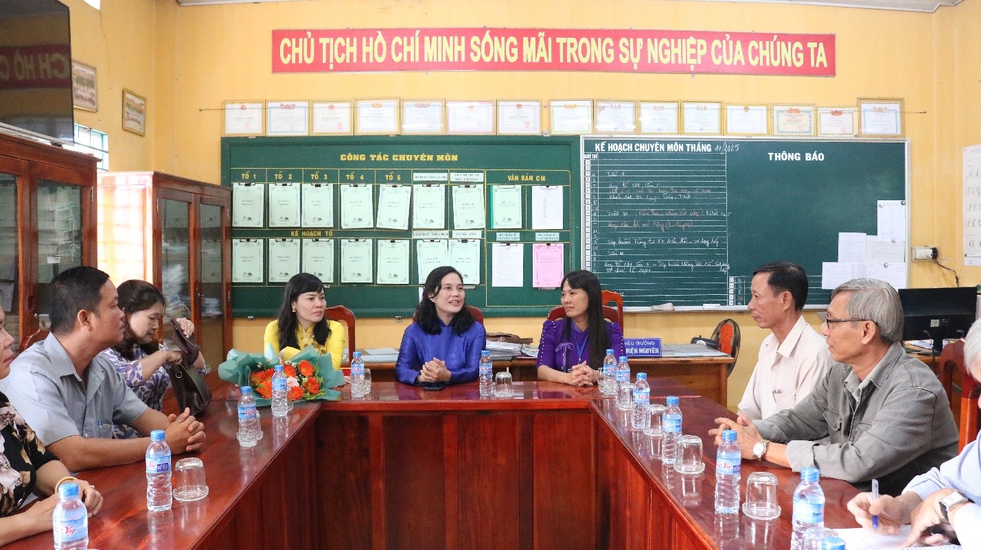 Ơ mỗi nơi đến thăm, các đồng chí lãnh đạo Thường trực Đảng ủy xã đã ân cần gửi lời thăm hỏi, động viên và chúc mừng đội ngũ cán bộ, người làm công tác giáo dục, các thầy, cô nhân kỷ niệm 43 năm ngày Nhà giáo Việt Nam 20/11, đồng thời, khẳng định vai trò của các thầy, cô giáo đối với sự nghiệp “trồng người”, mong muốn các thầy, cô sẽ tiếp tục nêu cao lý tưởng nghề nghiệp, mãi là một tấm gương sáng về đạo đức, học tập và rèn luyện cho học sinh noi theo, góp phần xây dựng ngành giáo dục xã nhà phát triển toàn diện.