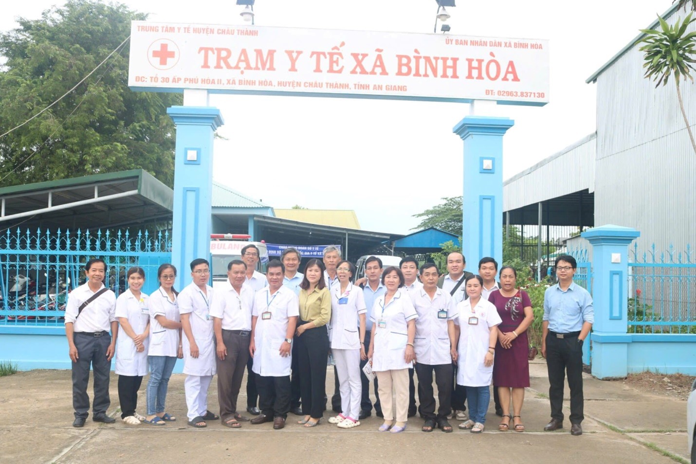 Trạm Y tế xã Bình Hòa chụp hình lưu niệm với Đoàn kiểm tra của Sở Y tế