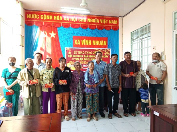 Nhân dịp tết Nguyên đán Ất Tỵ năm 2025, Ủy ban MTTQ Việt Nam xã Vĩnh Nhuận phối hợp với mạnh thường tổ chức trao 50 suất quà tết cho các hộ nghèo, hộ cận nghèo và hộ có hoàn cảnh khó khăn trên địa bàn xã. Tham dự buổi trao quà có ông Phan Thành Phương - Ủy viên Ban Thường vụ Huyện ủy, Chủ tịch Ủy ban MTTQ Việt Nam huyện Châu Thành.