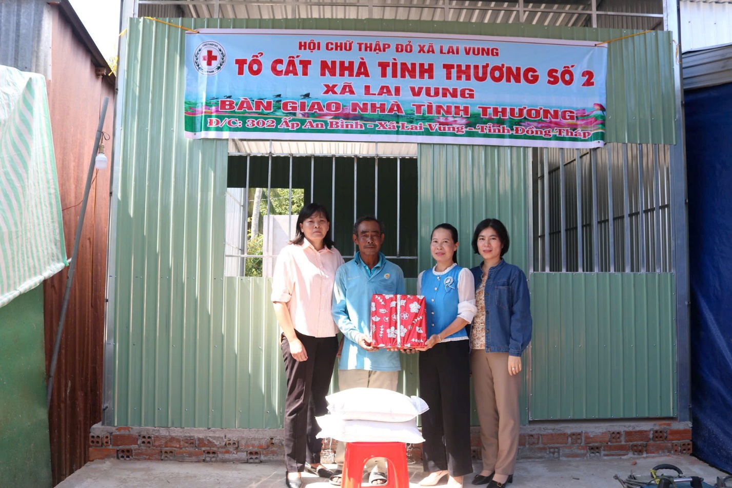 Mỗi căn có diện tích 32m2, ngang 4m, dài 8m, vách tôn, mái tôn, nền lát gạch được trao tặng cho 2 hộ: ông Nguyễn Văn Chơn, ấp Tân Thành và ông Trần Văn Nhẩn, ấp Hòa Thạnh, tổng trị giá 120.000.000 đồng do Tổ cất nhà tình thương số 2 xã Lai Vung, tỉnh Đồng Tháp hỗ trợ.