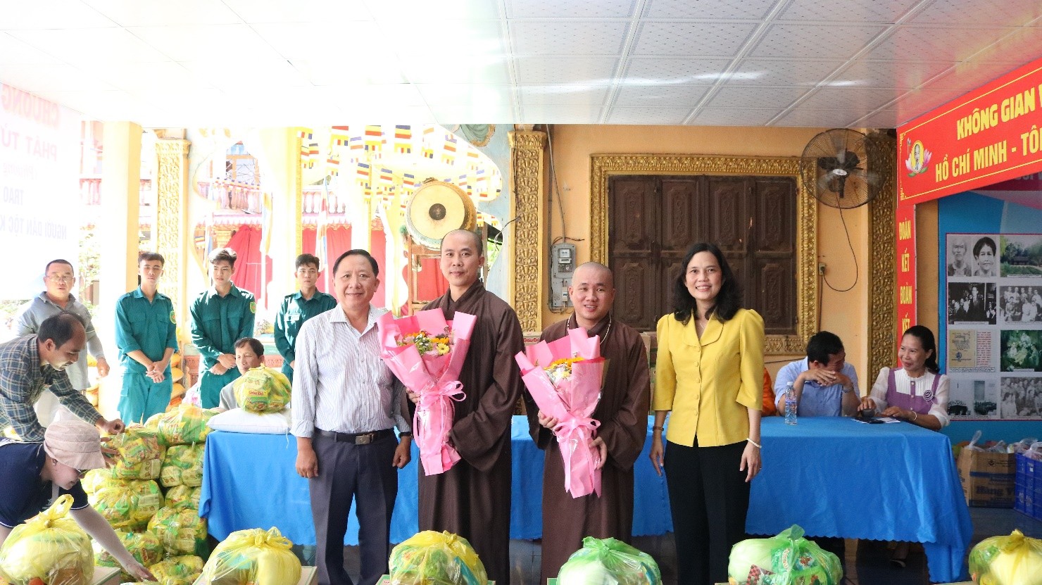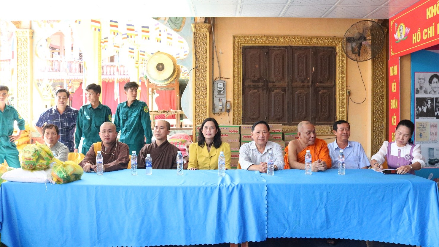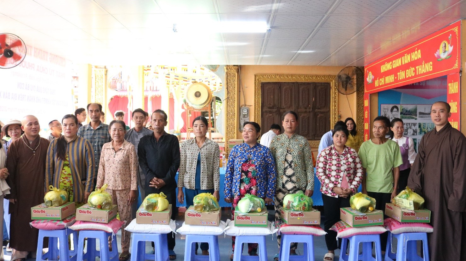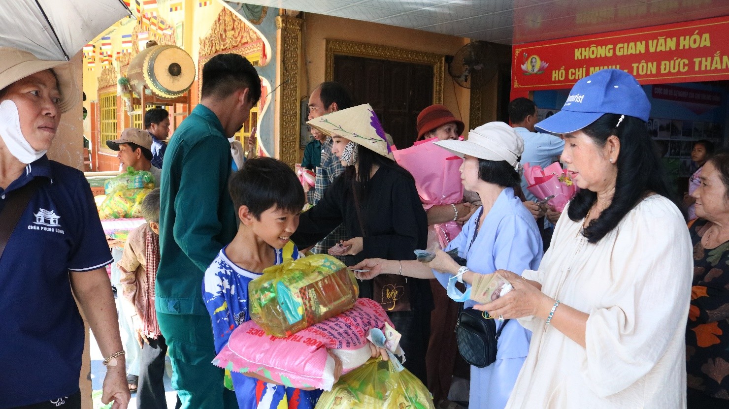 Tại buổi trao quà, đại diện Ủy ban Mặt trận Tổ quốc Việt Nam xã; Chùa Phước Long trao tặng 200 phần quà gồm: gạo, mì gói, đường, nước tương và tiền mặt 150 ngàn đồng... tổng trị giá đợt trao tặng trên 120 triệu đồng do phật tử Chùa Phước Long Phường Tân Châu hỗ trợ.