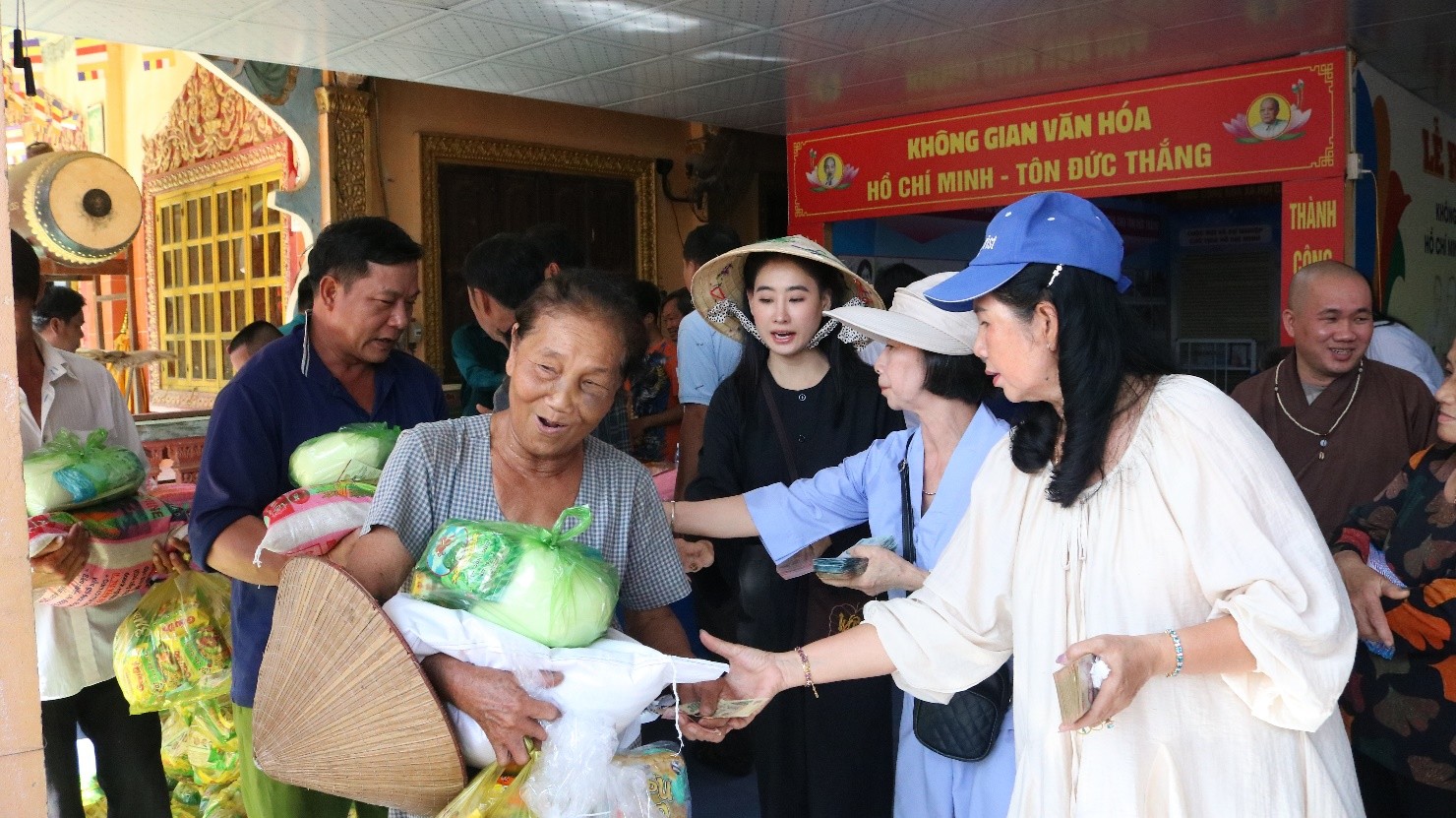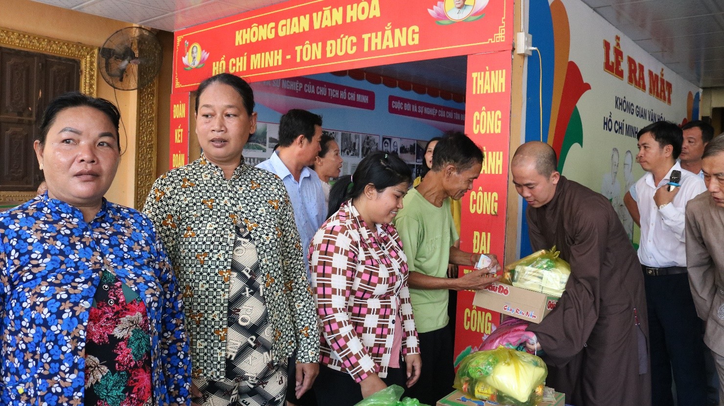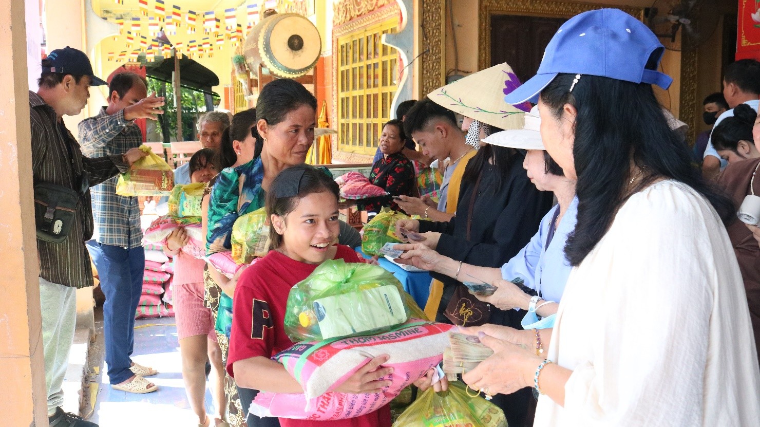 Tại buổi trao quà, đại diện Ủy ban Mặt trận Tổ quốc Việt Nam xã; Chùa Phước Long trao tặng 200 phần quà gồm: gạo, mì gói, đường, nước tương và tiền mặt 150 ngàn đồng... tổng trị giá đợt trao tặng trên 120 triệu đồng do phật tử Chùa Phước Long Phường Tân Châu hỗ trợ.