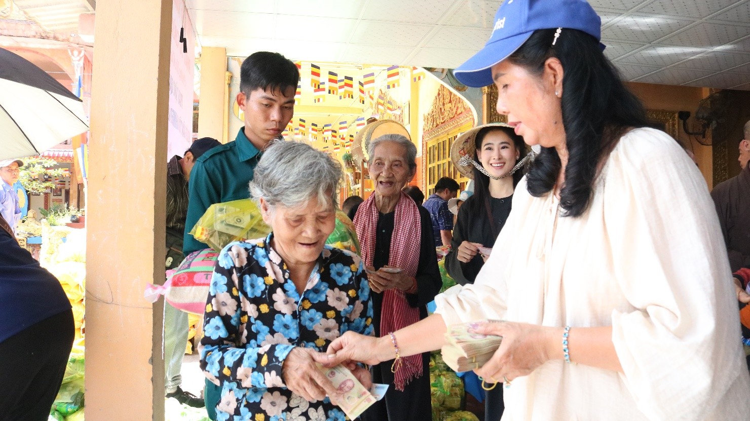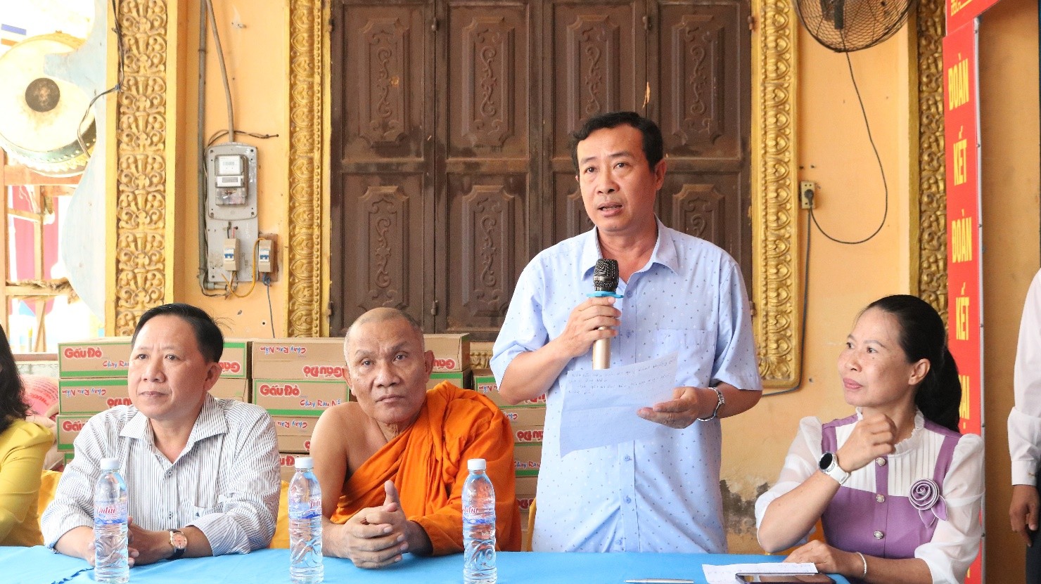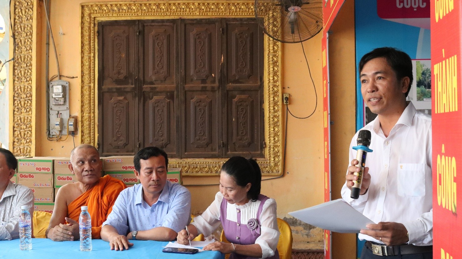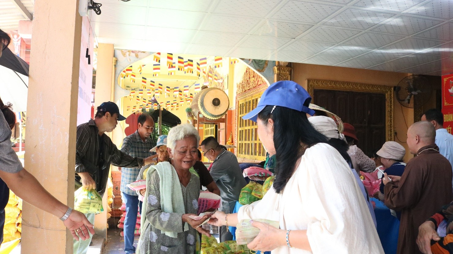 Tại buổi trao quà, đại diện Ủy ban Mặt trận Tổ quốc Việt Nam xã; Chùa Phước Long trao tặng 200 phần quà gồm: gạo, mì gói, đường, nước tương và tiền mặt 150 ngàn đồng... tổng trị giá đợt trao tặng trên 120 triệu đồng do phật tử Chùa Phước Long Phường Tân Châu hỗ trợ.