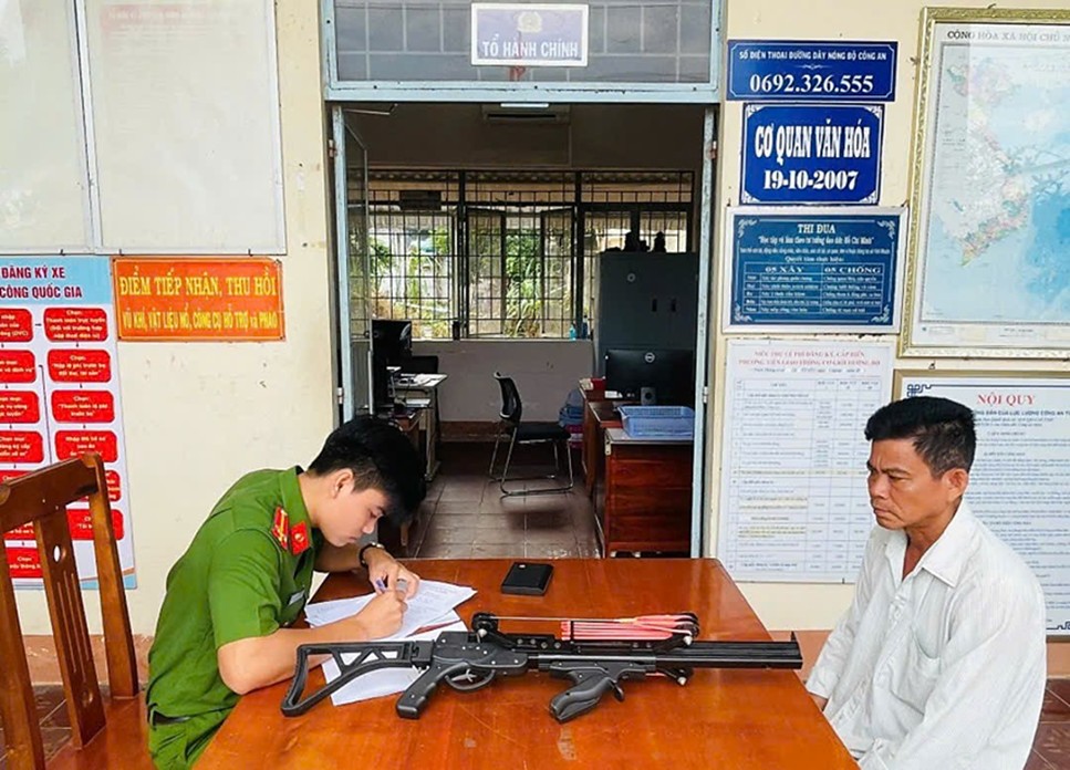 Trung tá Cao Thanh Hải - Trưởng Công an xã Vĩnh Nhuận chỉ đạo hiệu quả công tác vận động thu hồi vũ khí, vật liệu nổ, công cụ hỗ trợ