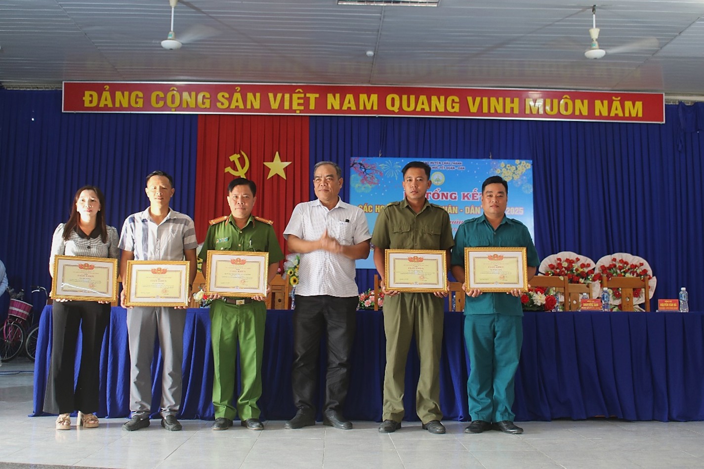 Trung tá Cao Thanh Hải, Trưởng Công an xã Vĩnh Nhuận nhận giấy khen Chủ tịch UBND huyện