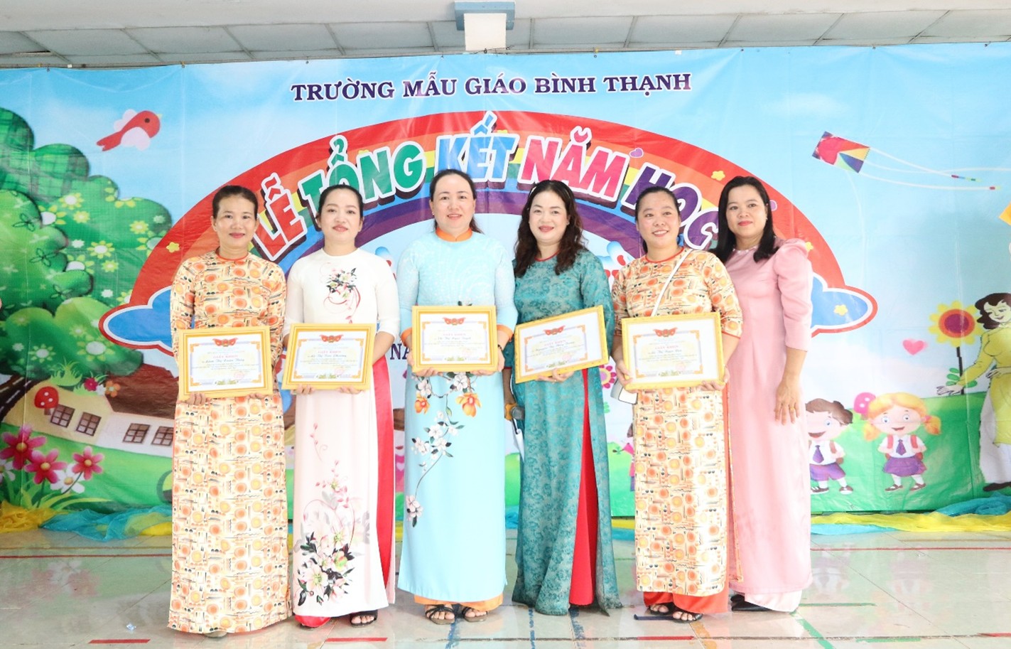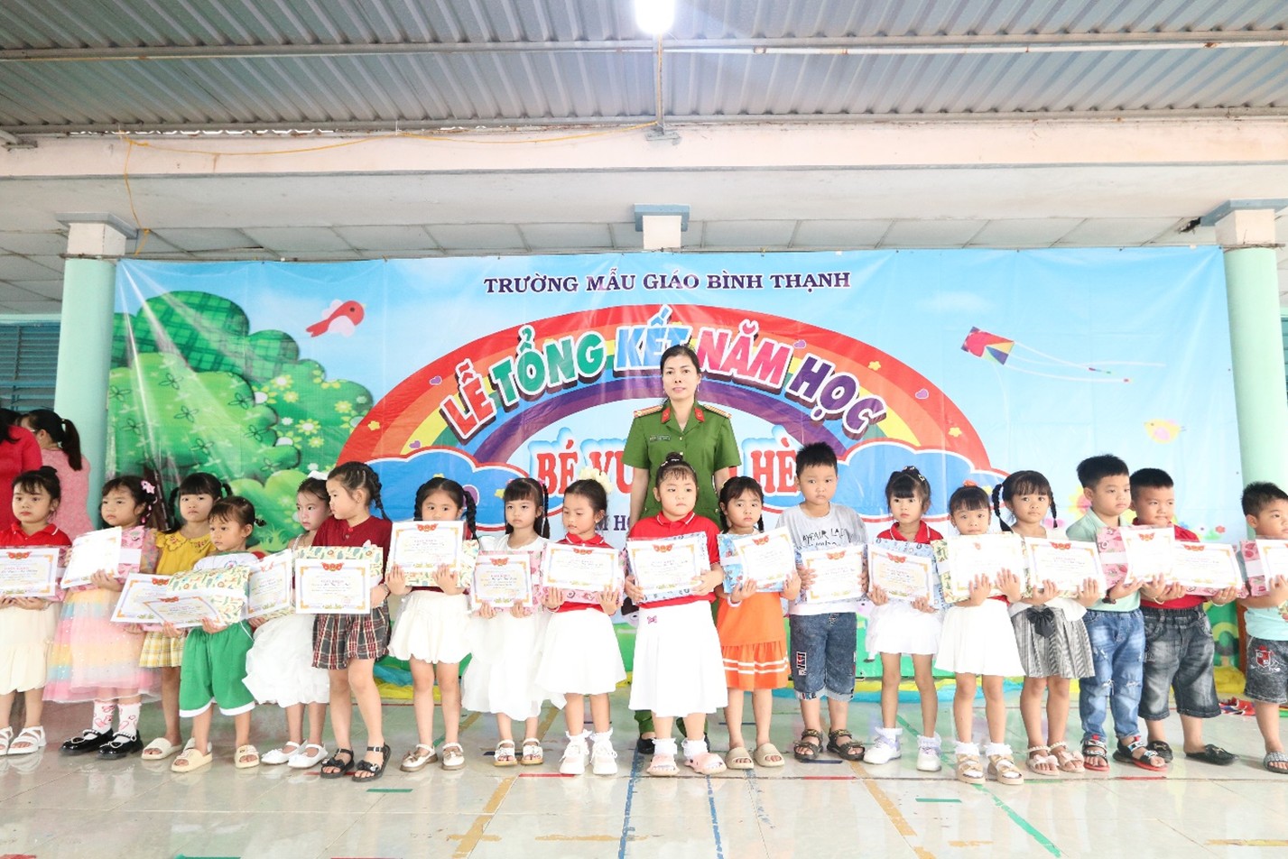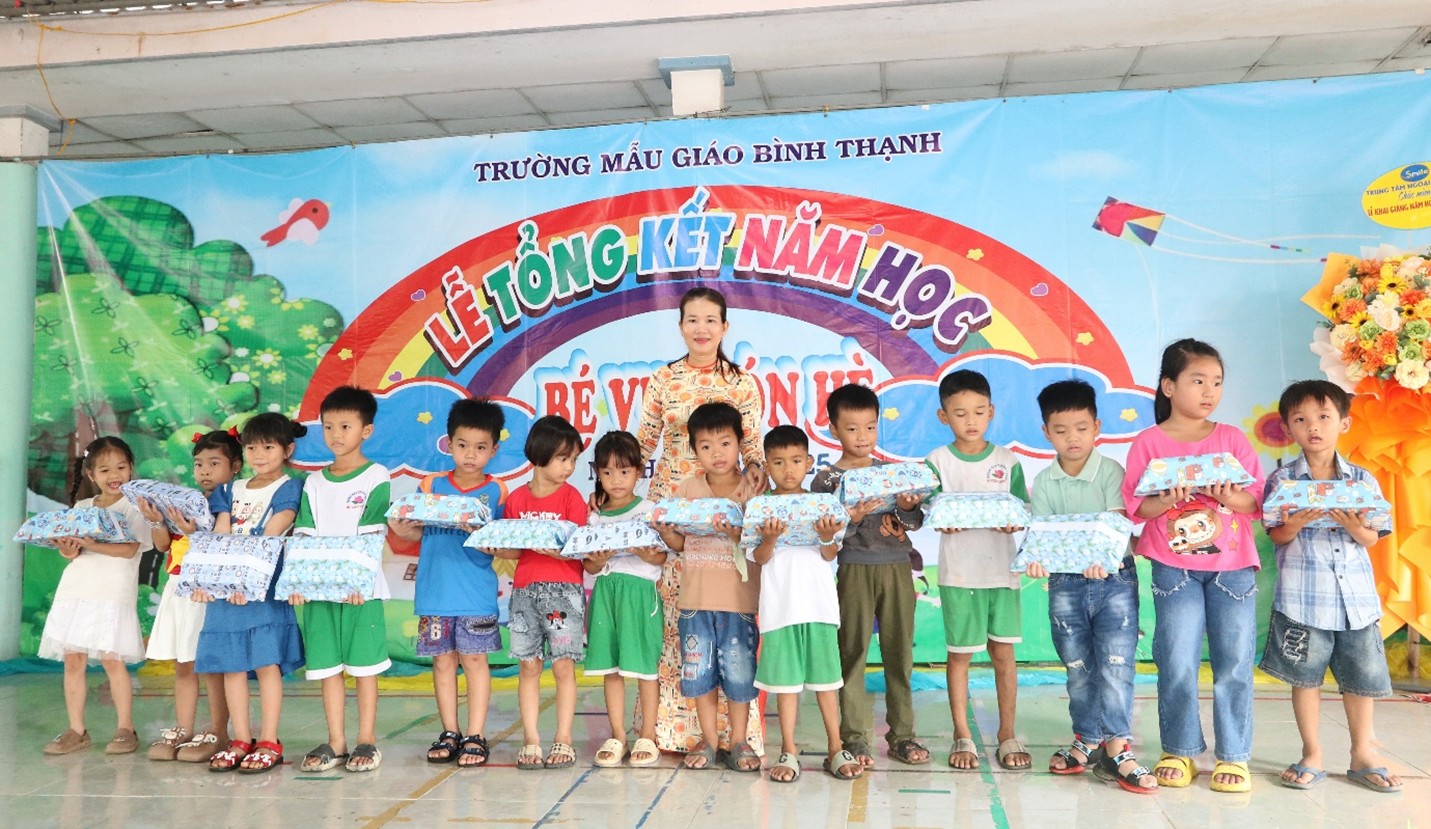Cũng tại buổi Lễ, Trường Mẫu giáo Bình Thạnh đã khen thưởng cho nhiều cán bộ, giáo viên có thành tích xuất sắc trong năm học 2024 – 2025 và cá nhân các em học sinh đạt xuất sắc, tiên tiến năm học 2024 – 2025. Đồng thời, nhà trường còn trao nhiều phần quà cho các em học sinh có hoàn cảnh khó khăn trên địa bàn xã.