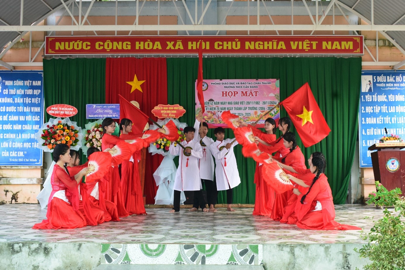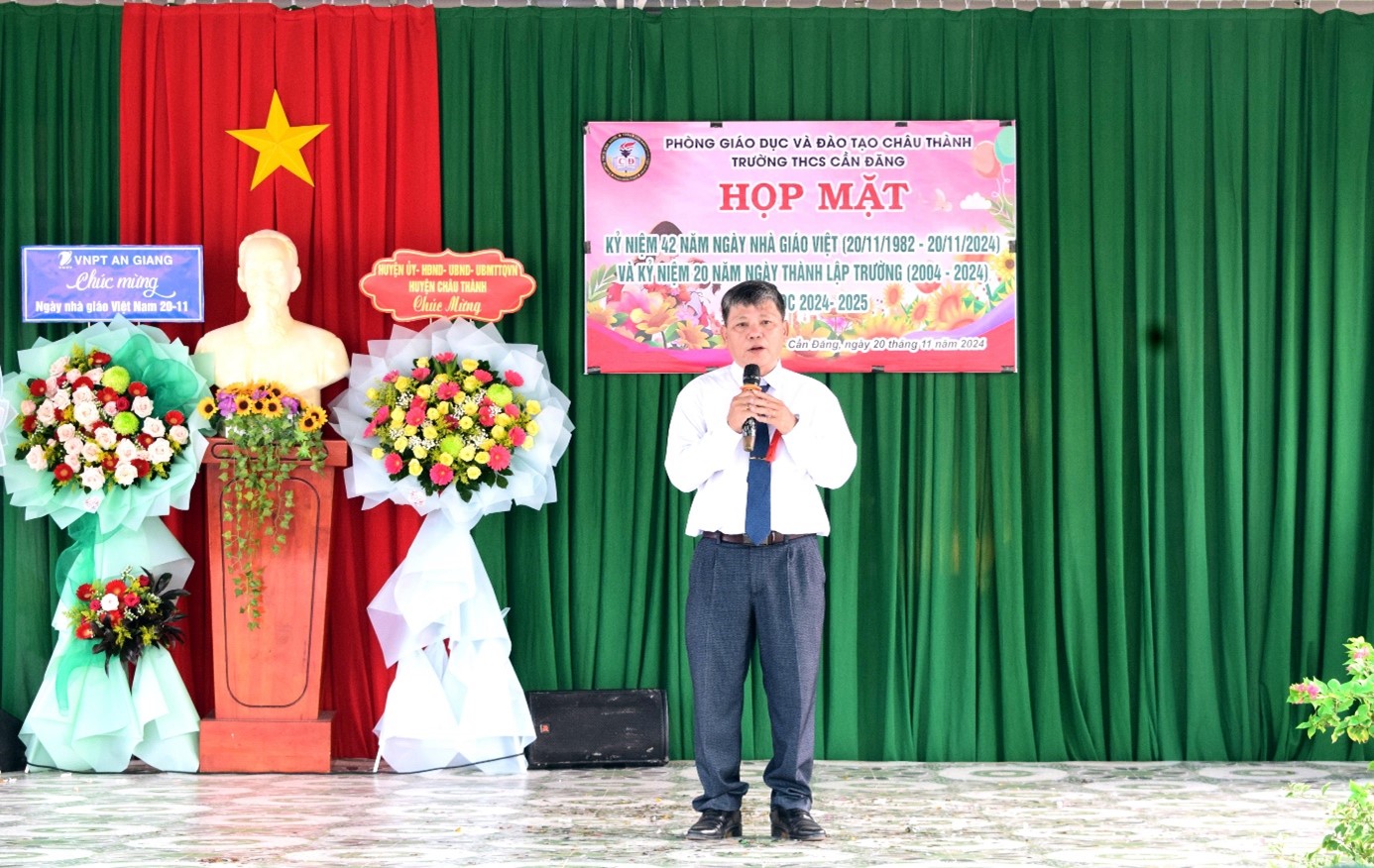 Trong không khí trang trọng của ngày Lễ kỷ niệm 42 năm Ngày Nhà giáo Việt Nam và 20 năm thành lập Trường THCS Cần Đăng, lãnh đạo huyện Châu Thành, lãnh đạo Phòng Giáo dục và Đào tạo huyện, tập thể thầy và trò của nhà trường dành cho nhau những lời chúc tốt đẹp nhất.