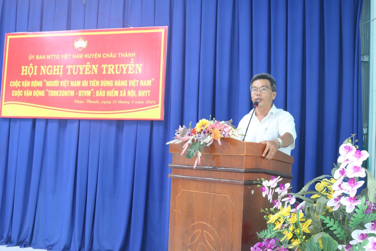 Sáng ngày 21/8/2024, tại xã Bình Hòa, Ủy ban Mặt trận Tổ Việt Nam huyện Châu Thành tổ chức Hội nghị tuyên truyền Cuộc vận động “Người Việt Nam ưu tiên dùng hàng Việt Nam” và Cuộc vận động “Toàn dân đoàn kết xây dựng Nông thôn mới – Đô thị văn minh”; Bảo hiểm xã hội, Bảo hiểm y tế năm 2024. Dự buổi tuyên truyền có ông Nguyễn Thành Tâm – Phó Chủ tịch UBMTTQ huyện Châu Thành; ông Hồ Ngọc Thơ – Phó Giám đốc BHXH huyện; cùng 50 bà con Nhân dân xã Bình Hòa và An Hòa tham dự.