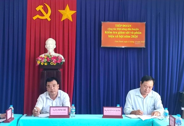 Sáng ngày 11-11-2024, tại xã Vĩnh Thành, ông Nguyễn Văn Thường, Phó Chủ tịch Thường trực Hội Nông dân huyện Châu Thành làm Trưởng đoàn, đến kiểm tra, giám sát và phản biện xã hội. Tiếp và làm việc với Đoàn có ông Tạ Minh Trí, Phó Bí thư Đảng ủy, Chủ tịch UBND xã Vĩnh Thành.