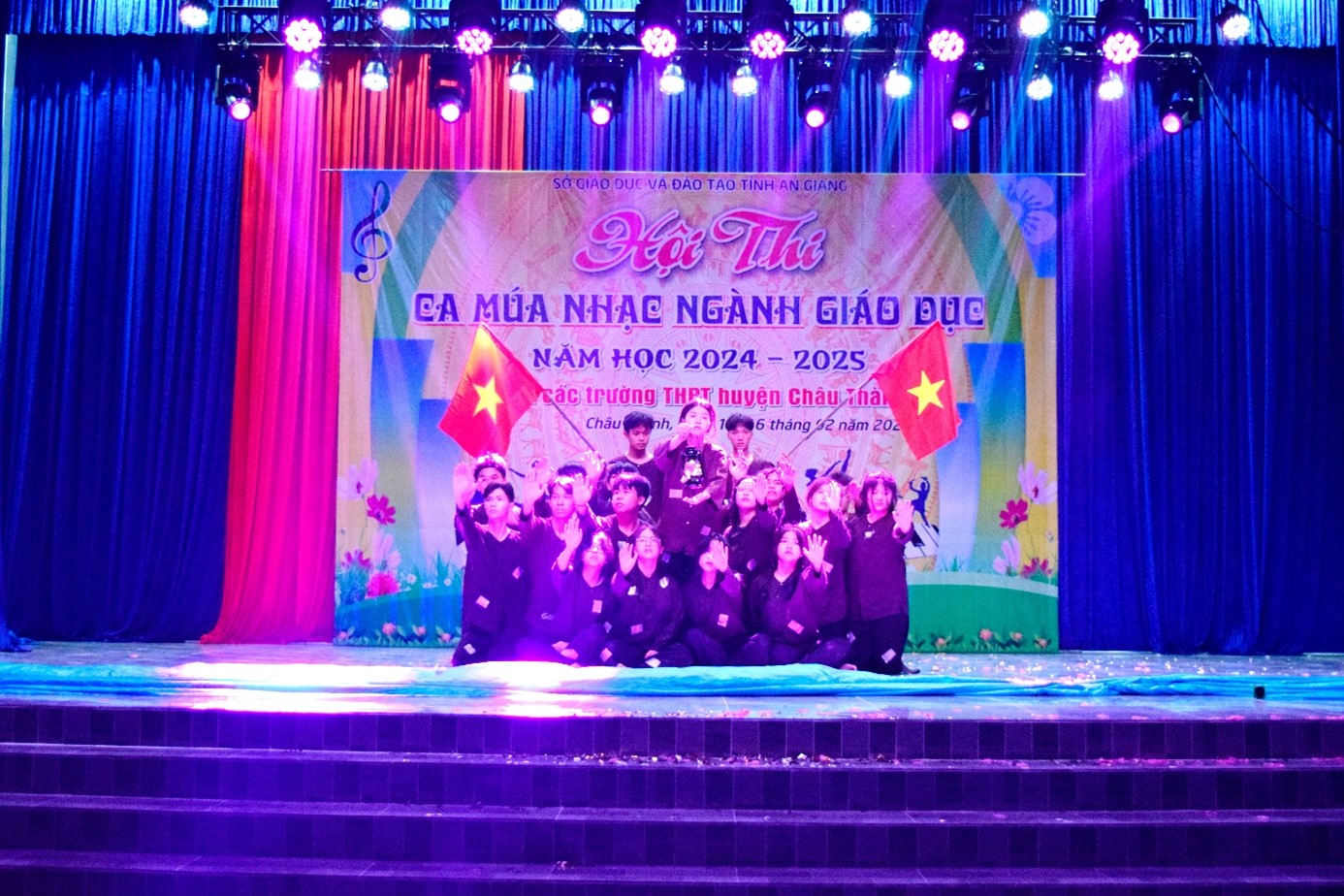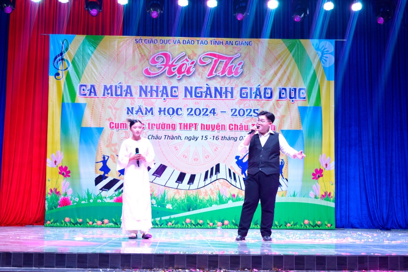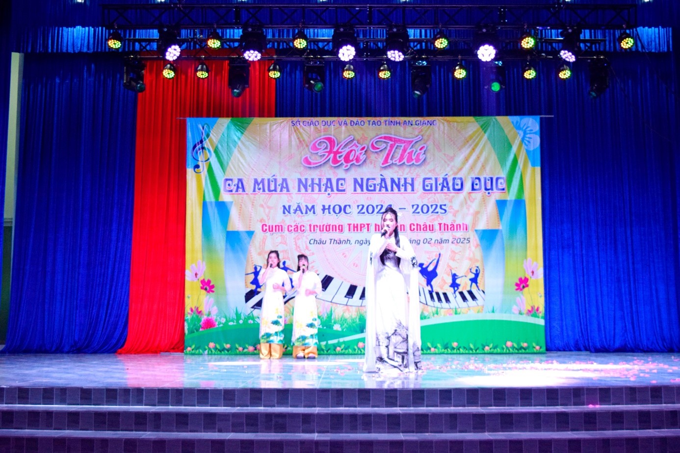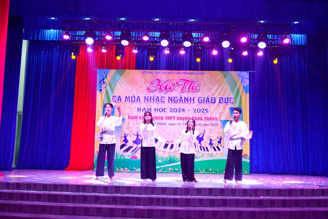 Tối ngày 16-2-2025, tại Hội trường Trung tâm Văn hóa, Thể thao và Truyền thanh huyện Châu Thành, Sở Giáo dục và Đào tạo (GĐ&ĐT) tỉnh An Giang tổ chức Vòng loại cấp tỉnh Hội thi Ca múa nhạc Ngành Giáo dục và Đào tạo năm học 2024 – 2025, cụm các Trường THPT huyện Châu Thành.