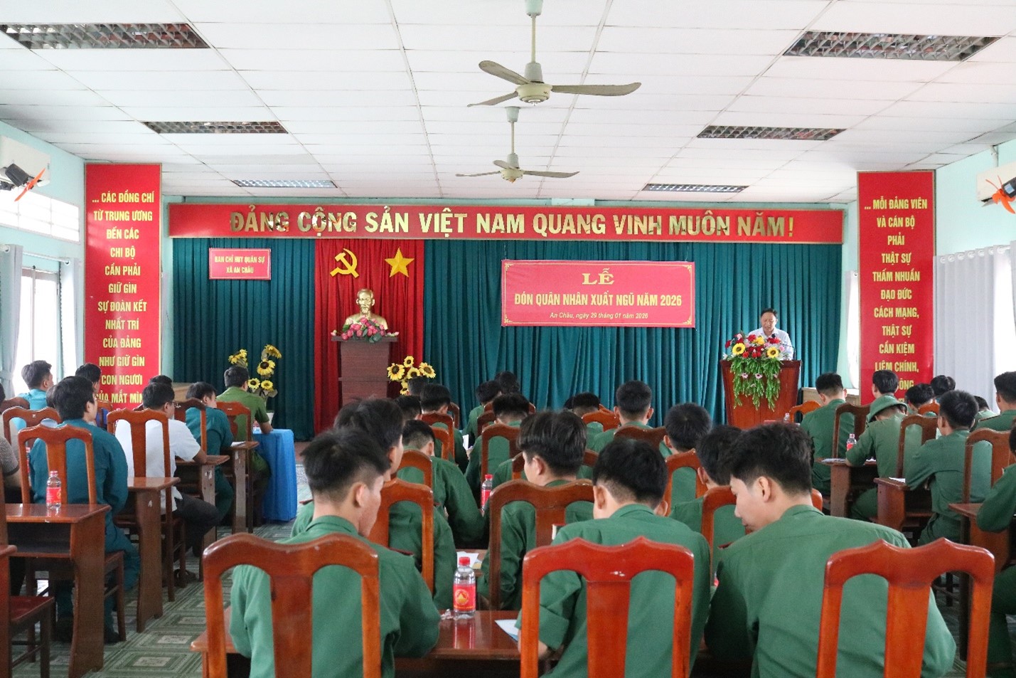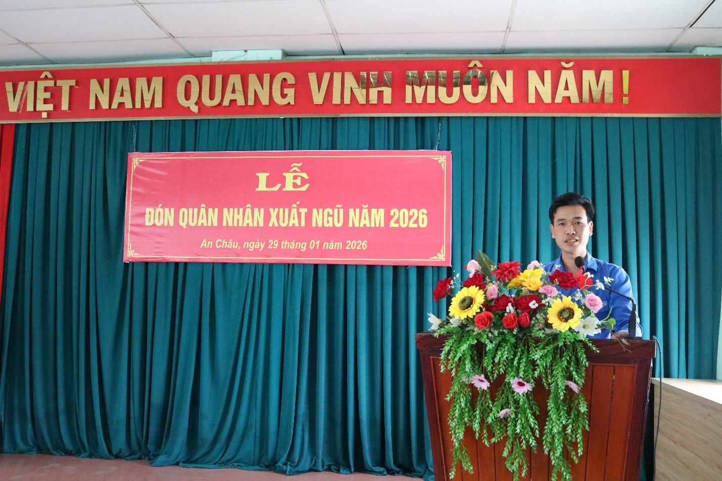 Ngày 29-01-2026, Ban Chỉ huy Quân sự xã An Châu tổ chức lễ đón quân nhân hoàn thành nghĩa vụ quân sự trở về địa phương. Tham dự buổi lễ có đồng chí Đặng Thị Hoa Rây – Tỉnh ủy viên, Bí thư Đảng ủy, Chủ tịch HĐND xã; đồng chí Hồ Hữu Tài – Phó Bí thư Đảng ủy, Chủ tịch UBND xã; đồng chí Trung tá Nguyễn Trường Giang – Chỉ huy trưởng Ban Chỉ huy Quân sự xã An Châu; lãnh đạo Phòng chuyên môn; Tổ chức chính trị - xã hội; quân nhân hoàn thành nghĩa vụ quân sự.