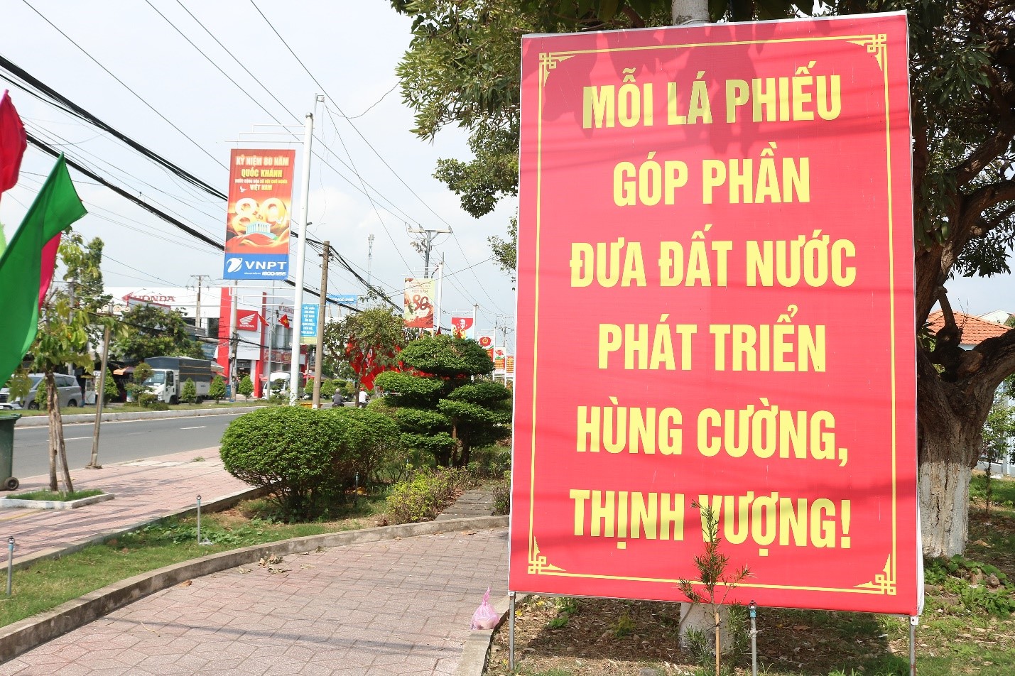 Công tác tuyên truyền cổ động trực quan được triển khai đồng bộ bằng nhiều hình thức như treo cờ Đảng, cờ Tổ quốc, băng-rôn, khẩu hiệu, cờ phướn tại trụ sở làm việc; tuyên truyền trên pa-nô, áp-phích tại các tuyến đường, trục giao thông, khu vực trung tâm, địa điểm bỏ phiếu và các vị trí phù hợp khác. Các ấp tăng cường tuyên truyền, vận động người dân treo cờ Đảng, cờ Tổ quốc tại hộ gia đình bảo đảm đồng bộ, trang trọng, mỹ quan.