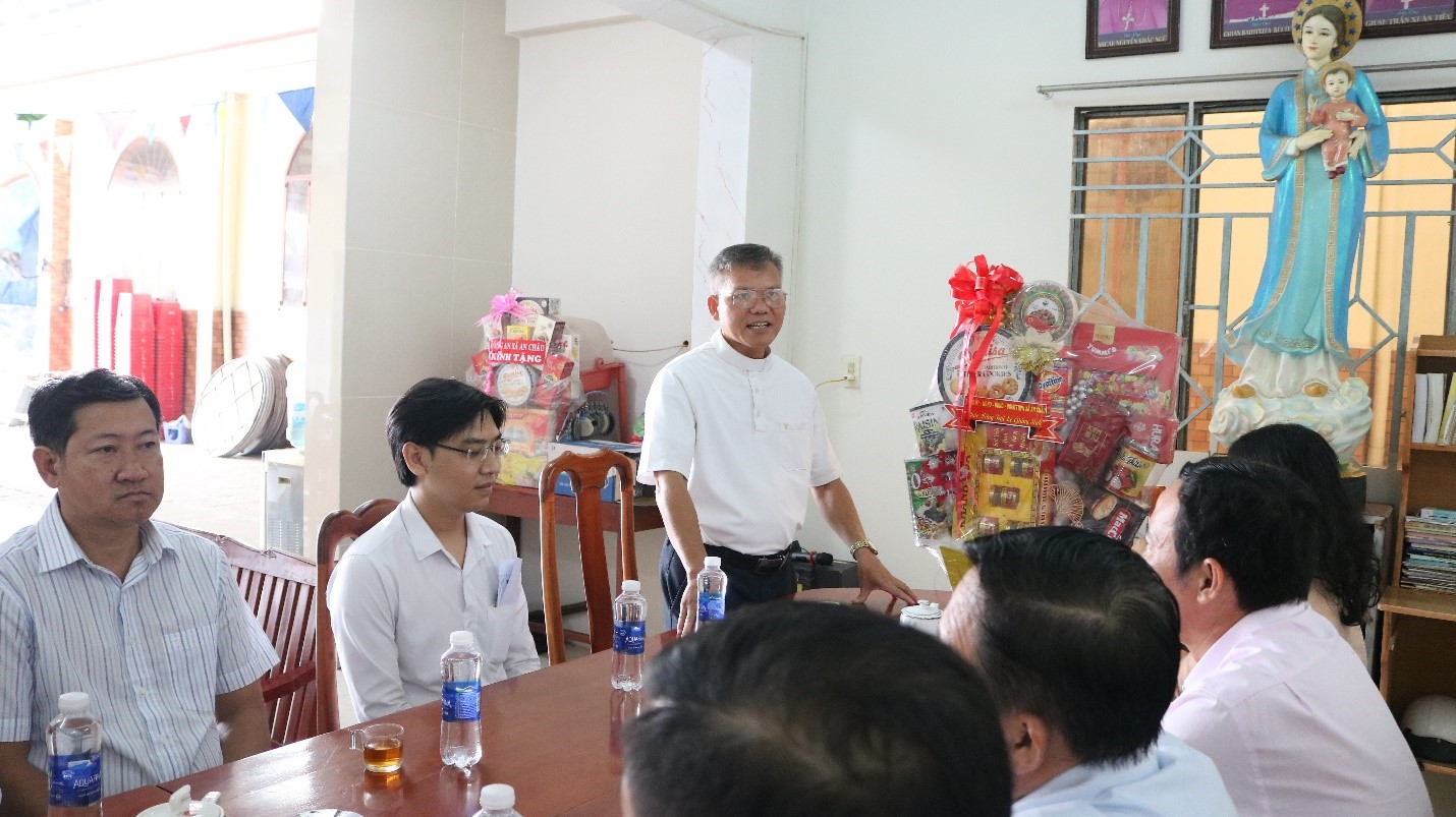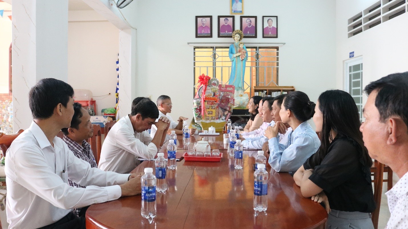 Tại nơi đến, thay mặt Đảng ủy, Hội đồng nhân dân, Ủy ban nhân dân, Ủy ban mặt trận tổ quốc Việt Nam xã, đồng chí Đặng Thị Hoa Rây – Tỉnh ủy viên, Bí thư Đảng ủy, Chủ tịch HĐND xã thông tin với Linh mục, mục vụ Nhà thờ về tình hình phát triển kinh tế - xã hội, quốc phòng an ninh trên địa bàn, trong đó, có sự đóng góp tích cực của bà con giáo dân. Đồng thời, gửi lời thăm hỏi sức khỏe đến các vị Linh mục, mục vụ và bà con giáo dân nhiều sức khỏe, hưởng một mùa giáng sinh an lành, hạnh phúc. Mong rằng, các vị tiếp tục động viên bà con giáo dân thực hiện tốt chủ trương, chính sách, pháp luật của Đảng, Nhà nước, phát huy sức mạnh đoàn kết, chung tay cùng địa phương thực hiện nếp sống văn hóa, văn minh đô thị, góp phần thay đổi diện mạo địa phương, ngày càng phát triển, khởi sắc.