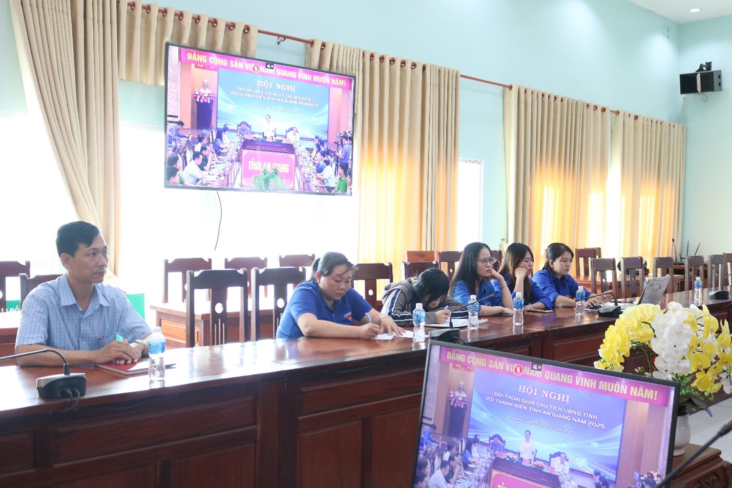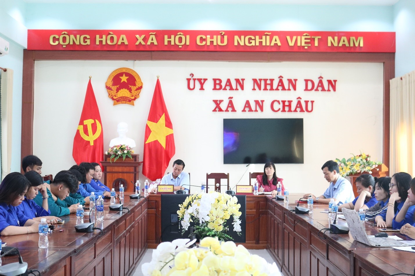 Tham dự tại điểm cầu trực tuyến xã An Châu có đồng chí Lê Hồ Ngọc Trung – Phó Bí thư Thường trực Đảng ủy xã; đồng chí Huỳnh Thị Thanh Tuyền – Phó Chủ tịch UBND xã; cùng đoàn viên, thanh niên xã.