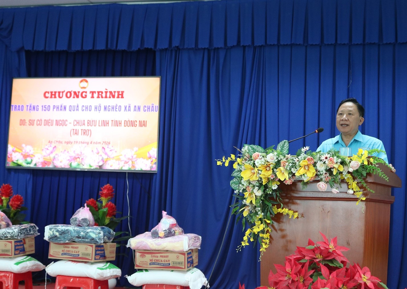 Phát biểu tại chương trình, ông Hồ Hữu Tài – Phó Bí thư Đảng ủy, Chủ tịch UBND xã gửi lời cám ơn và trân trọng sự đóng góp của quý nhà hảo tâm đã dành cho bà con hộ nghèo, hộ có hoàn cảnh khó khăn trên địa bàn xã An Châu, mong rằng, địa phương sẽ tiếp tục nhận được sự quan tâm, hỗ trợ của quý nhà hảo tâm cho công tác an sinh xã hội trong thời gian tới. Chủ tịch UBND xã cũng chia sẻ những khó khăn cùng bà con hộ nghèo, hộ khó khăn. Với những phần quà nghĩa tình sẽ tạo động lực để bà con vươn lên, vượt qua khó khăn, sớm ổn định cuộc sống.
