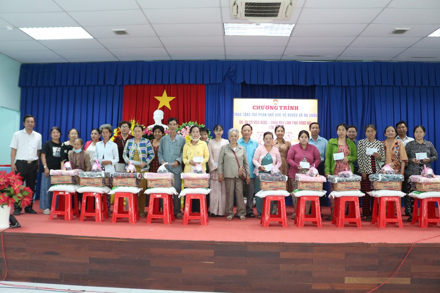 Tại chương trình, Ban Thường trực UBMTTQVN xã An Châu, quý nhà hảo tâm trao tặng 150 phần quà cho bà con, mỗi phần trị giá 400.000 đồng, gồm gạo, mì gói, nước tương, mền và tiền mặt… do nhà hảo tâm Chùa Bửu Linh, tỉnh Đồng Nai hỗ trợ.