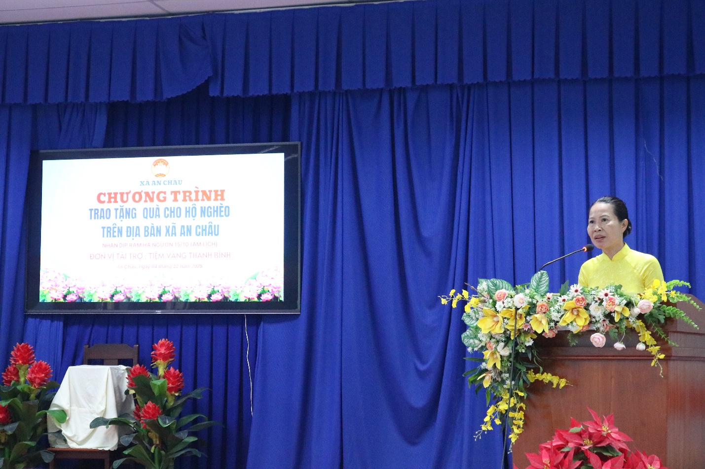 Sáng ngày 04-12-2025, Ủy ban Mặt trận Tổ quốc Việt Nam xã An Châu phối hợp Tiệm vàng Thanh Bình xã An Châu tổ chức trao tặng 245 phần quà cho bà con hộ nghèo, hộ khó khăn trên địa bàn. Ông Trương Thành Trung - Phó Chủ tịch HĐND xã; bà Phạm Thị Thu Dân – UVBTV Đảng ủy, Chủ tịch UBMTTQVN xã; bà Huỳnh Huỳnh Thị Thanh Tuyền – Phó Chủ tịch UBND xã; cùng mạnh thường quân, bà con nhân dân trên địa bàn tham dự.