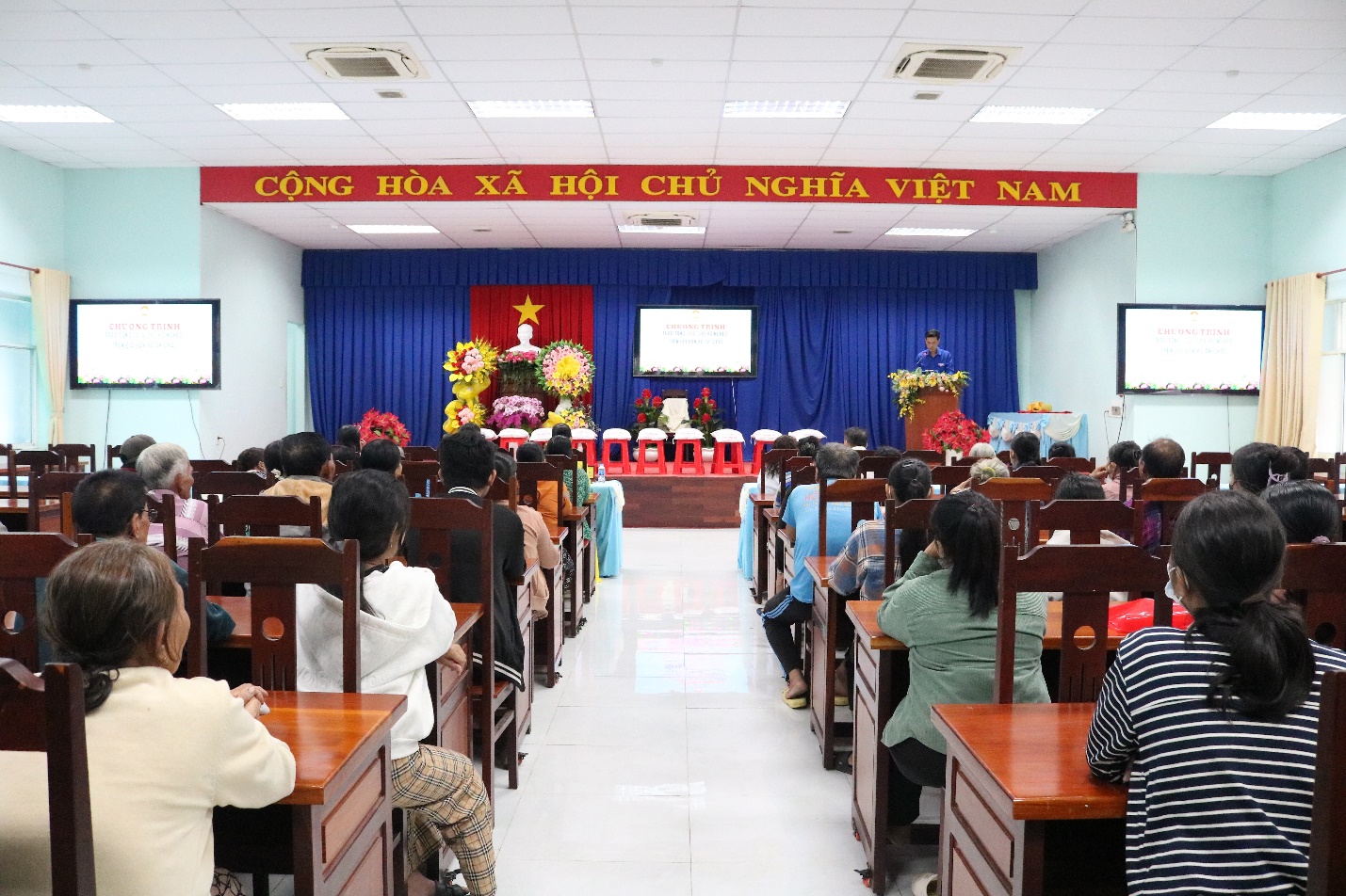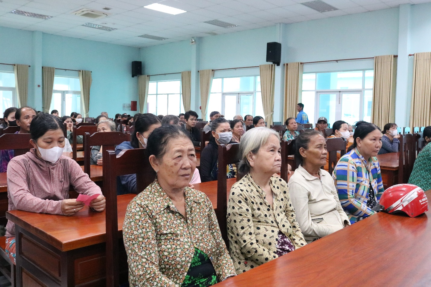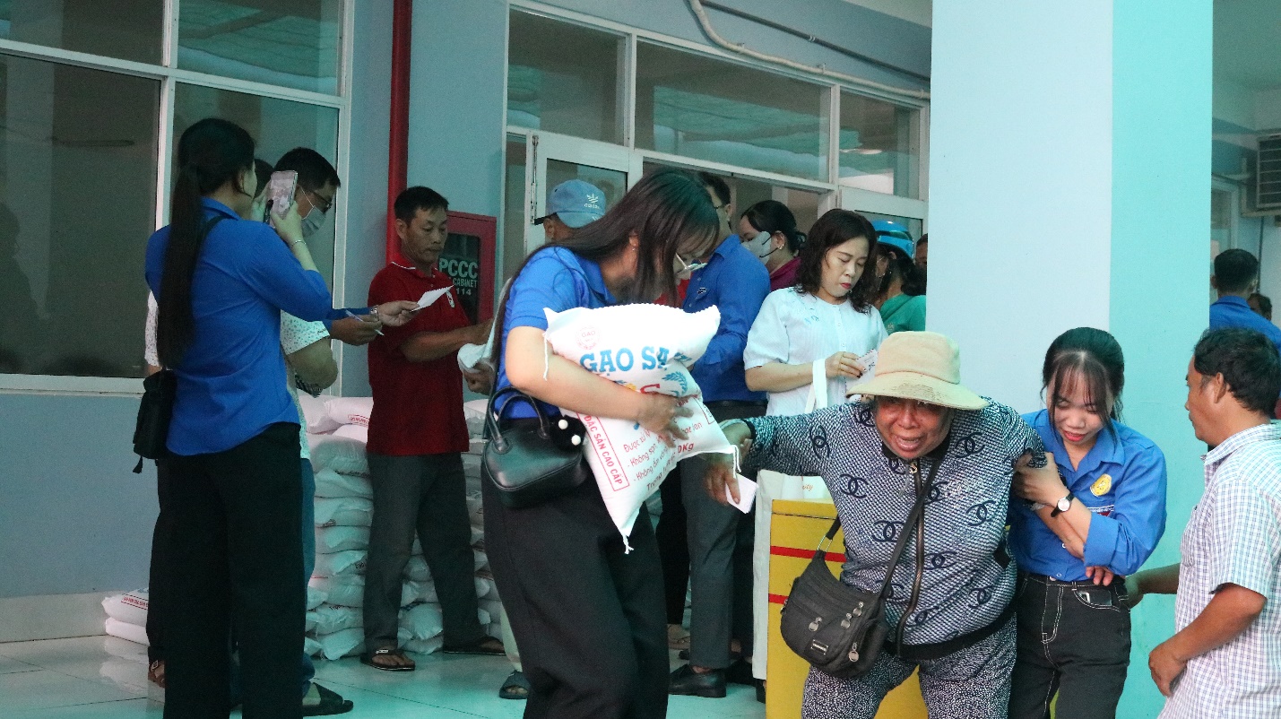 Đại diện địa phương và mạnh thường quân trao tặng 245 phần quà cho 245 bà con, mỗi phần gồm gạo và tiền mặt 100 ngàn đồng… do Tiệm vàng Thanh Bình hỗ trợ, tổng trị giá đợt trao tặng 3 tấn gạo và 24,5 triệu đồng.